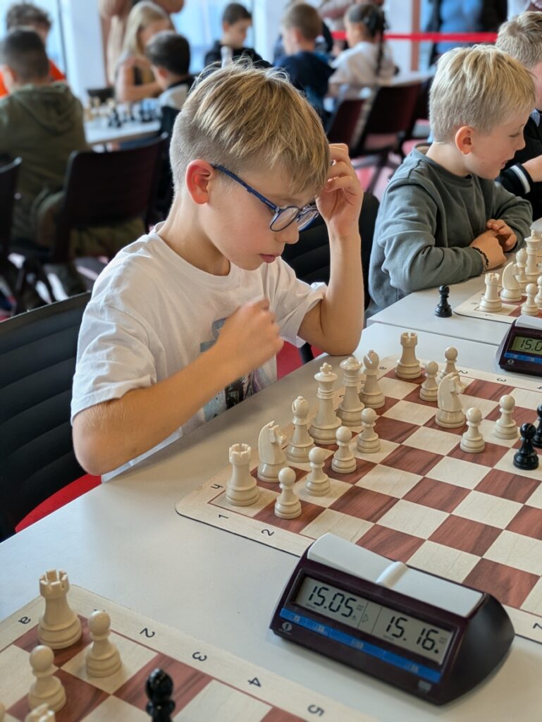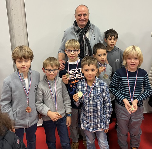 En U10, Valentin HANSZ, à la 8ème place (5 points / 7) est qualifié pour le Championnat d’Alsace, tout comme Achille WALTER à la 10ème place (5 points / 7), également qualifié. Auguste PANNOUX termine à la 32 éme place avec 4 points.